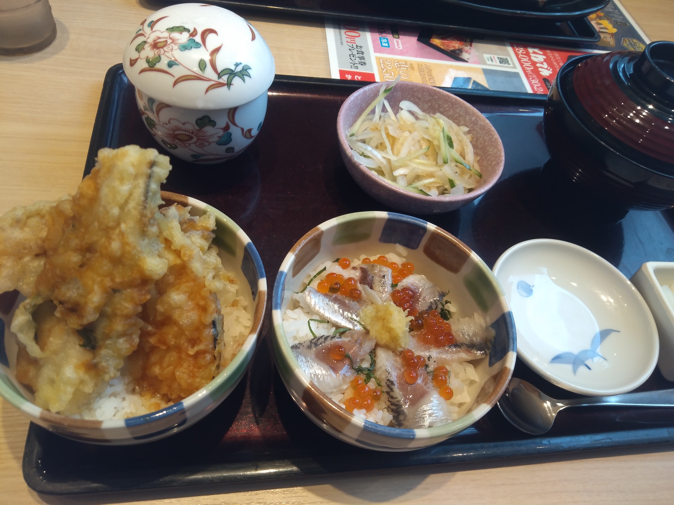 この日のランチは、和食チェ―ンTで、海鮮ランチ。。。 メニュ―名は忘れてしまったが、イワシが主役の料理。 イワシのちらし寿司、イワシの天婦羅丼、そしてイワシで作ったツミレ汁。。。 身体に良い青魚イワシ。。。 肉や中華料理に偏りがちな食生活、バランスよく魚料理を摂りいれる事も身体には必要だし、また味わって食べる習慣がつくと、その旨さも解ってくる。。。