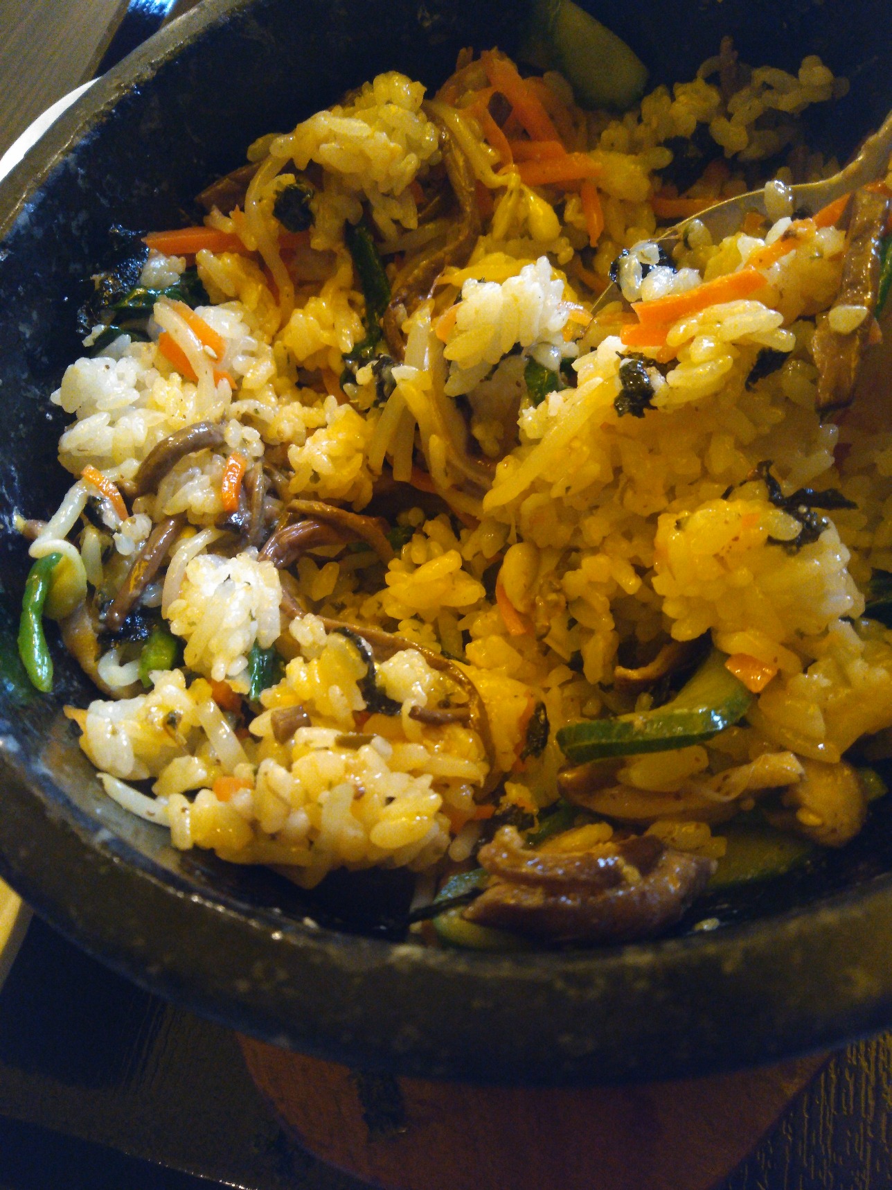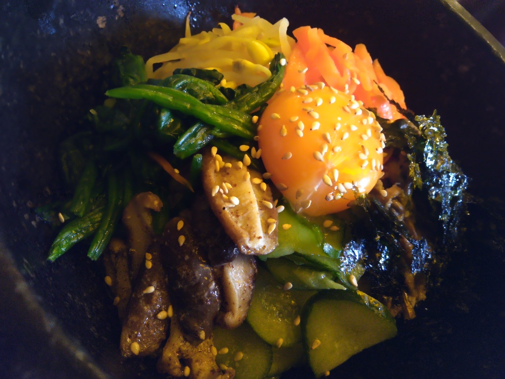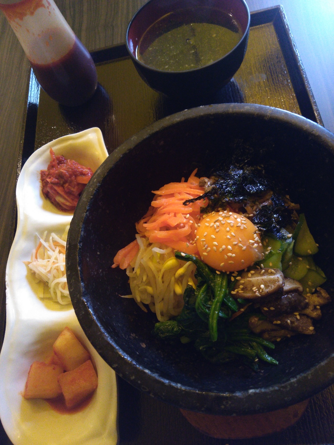 明治通りを右折すると、左は歌舞伎町、右は大久保。。。 この日は所用で歌舞伎町に行き、昼時はちょっとブラブラとコリアンタウンへ足をのばす。 ・・・そこで、本格韓国家庭料理店でランチタイム。 石焼ビビンバ。熱々の石焼なべに、具だくさんのビビンバ。 よ~くかき混ぜて食べる。。。ゴマ油の効いたご飯と具が絡み合い、なかなか いい味に仕上がる。 キムチを摘まみながら、熱々の石焼ビビンバ。。。 なかなかの満足感だ。
