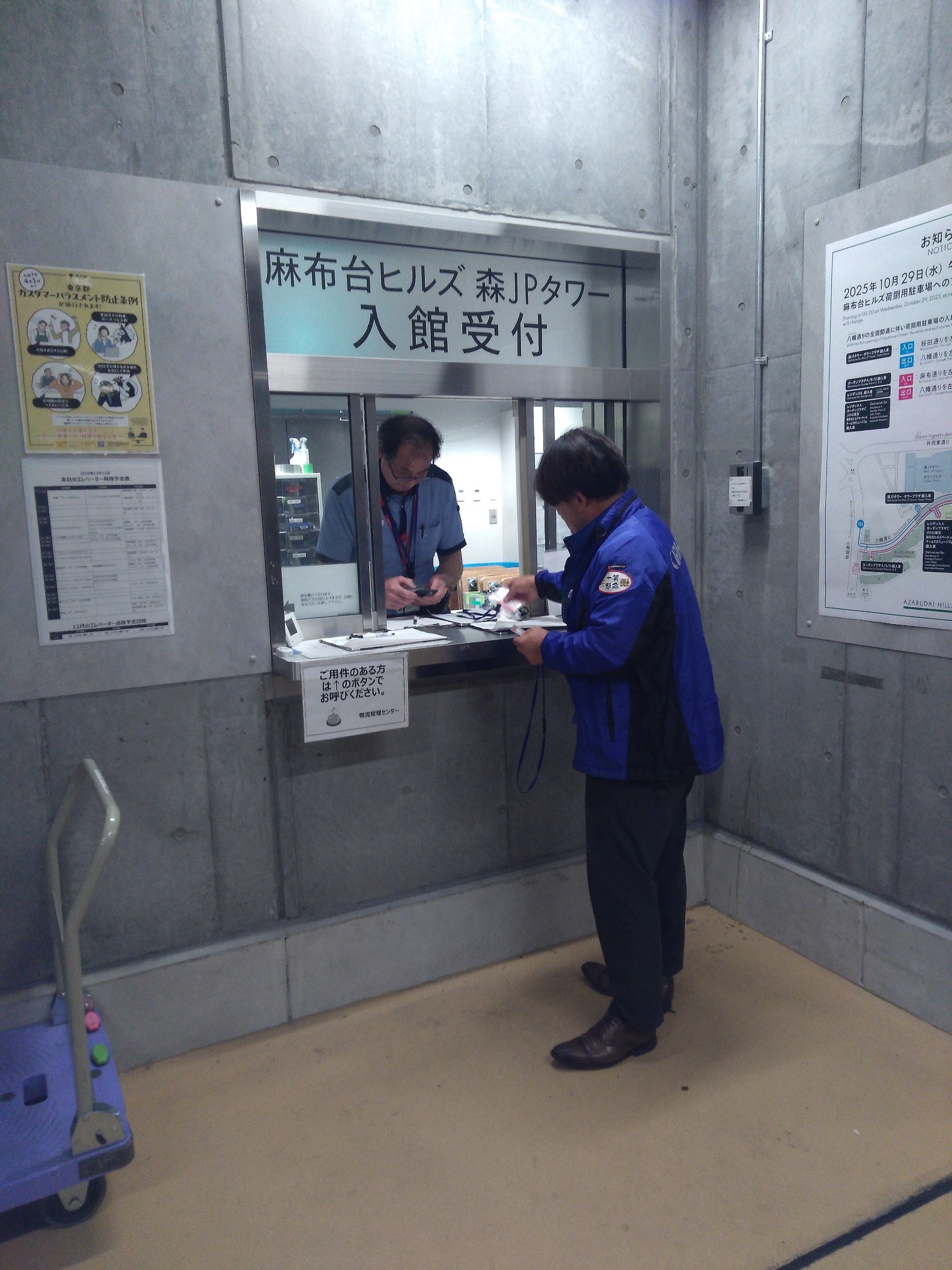 ・・・駐車場から業者専用口で、入館受付、そして迷路の様な通路と専用エレベーター。