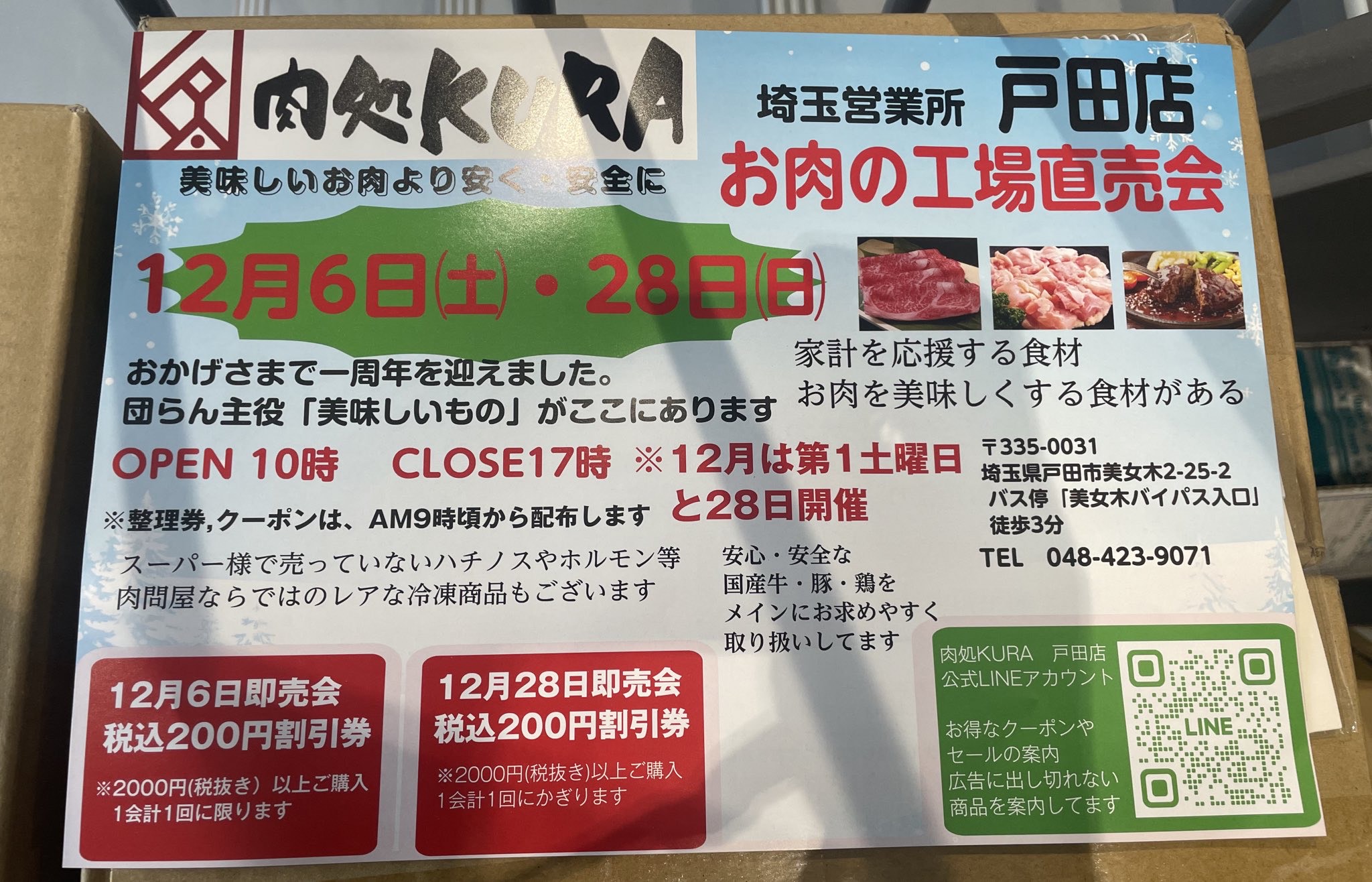 肉処KURA埼玉営業所は12月最後の即売会になります