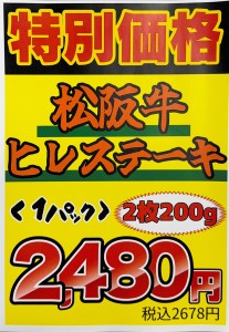 そして!今回はなんと!松阪牛ヒレをはじめ、ステーキ大特価!