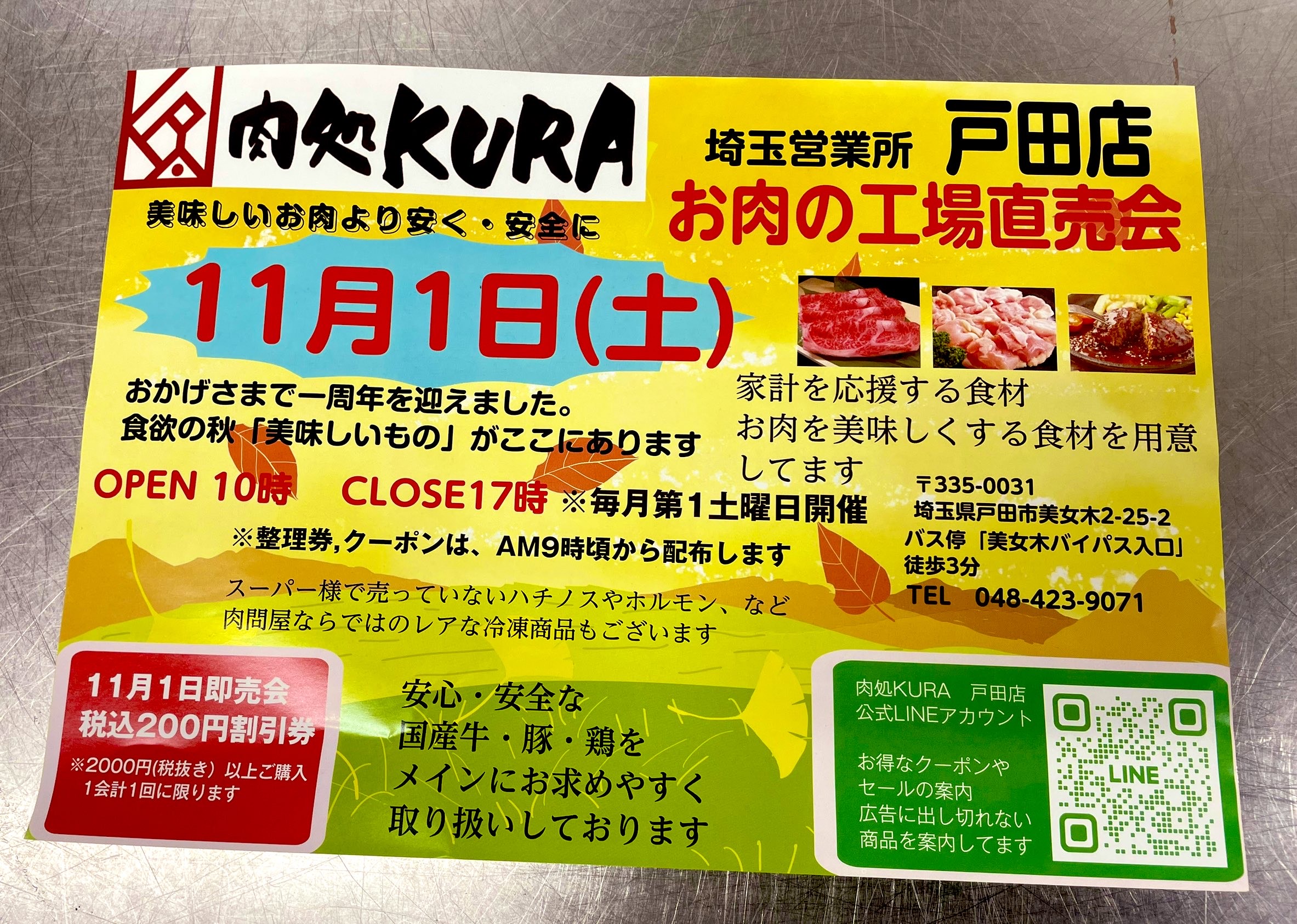 2025年10月27日 月曜日10月25日(土)肉処KURA西台店!直売会開催!